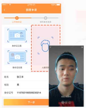 移动端整合了活体检测的SDK,通过调用本机摄像头,可对用户各种动作的识别判断是否真人借款,通过采集的照片与身份证照片比对,判断是否为本人借款。活体采集动作以及活体语音文字均可以自定义。
