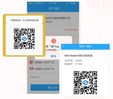 移动端指纹支付,扫码支付以及收单支付,均可以借助二维码扫一扫功能实现。